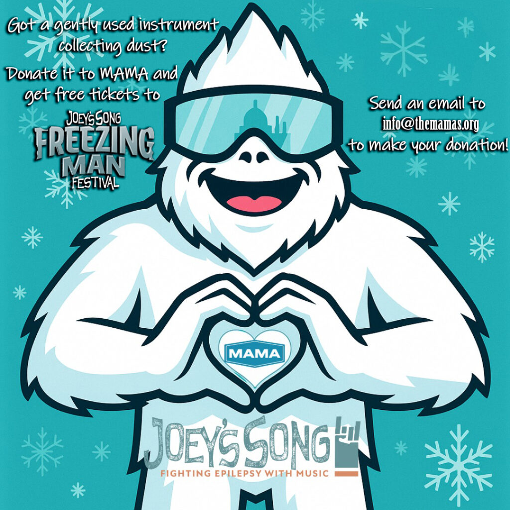Want a free ticket to Freezing Man this January at the Sylvee? Donate your gently used instrument to MAMA – we’ll not only get it into the hands of a young musician in need, but we’ll also hook you up with free tickets to this killer rock show featuring Grammy winners, Rock n’ Roll Hall of Famers and Top40 chart toppers! Email info@themamas.org to donate your instrument today!